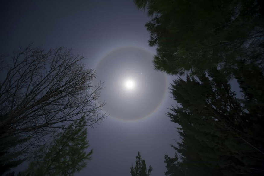 달 주위에 있는 광륜은 특히 높은 권운에 있는 얼음 빙정에 반사된 빛으로부터 발생합니다. 권운은 종종 심각한 날씨 변화를 일으키니 가급적이면 피하도록 하세요.