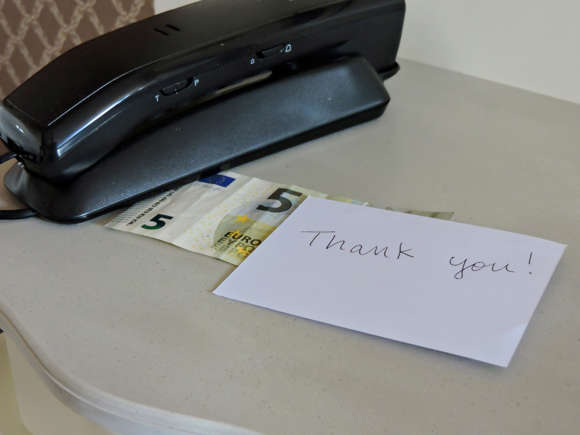 팁을 주는 것이 일반적인 그런 장소에 있다면, 감사하다는 작은 메모와 함께 팁을 잘 보이는 곳에 둡니다.