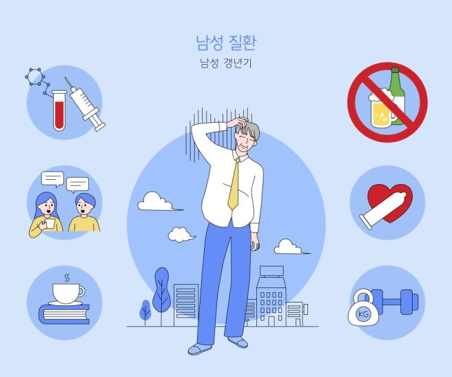 남성 갱년기는 자연스러운 노화 과정 중 유독 남성 호르몬이 정상치 이하로 다른 사람보다 더 많이 떨어지면서 관련 증상이 나타나는 현상을 말합니다. 보통 남성 호르몬인 테스토스테론의 분비가 줄어들면서 찾아옵니다. 대개 30대 후반무터 분비가 줄기 시작해 40대 후반이나 50대가 되면 본격적인 갱년기 증상이 시작됩니다.