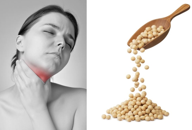 대두(콩) = 갑상선 기능 저하증이 있는 사람들은 갑상선 호르몬 약물의 일정한 흡수를 통해 갑상선 수치를 건강하게 유지하는 것이 중요합니다. 그러나 대두는 이 과정을 방해하기도 합니다. 한 연구에 따르면, 대두를 많이 섭취하거나 갑상선 호르몬 약물을 복용하기 직전이나 직후에 두유를 마시면 약물 흡수에 영향이 생긴다고 비라마차네니 박사가 강조했습니다.