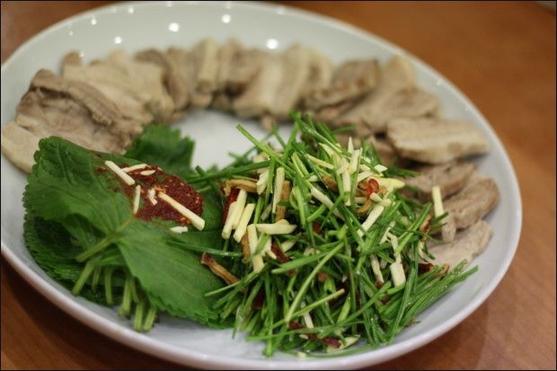주로 장아찌로 제공되는 명이나물은 특히 돼지고기와 궁합이 좋습니다. '산마늘'이라고도 불리는 명이나물은 부추보다 비타민C를 10배 이상 함유하고 있습니다. 섬유질과 비타민A도 풍부해 장운동을 도와 독성 물질을 배출합니다. 피부와 눈 건강에도 좋습니다. 또 식중독균에 대한 항균 효과가 있으며 ▲체내 비타민B 흡수 촉진 ▲항혈전 작용 ▲혈당·콜레스테롤 조절과 같은 효능도 냅니다. 삼겹살 등 돼지고기에는 비타민B가 풍부하므로 명이나물을 곁들이면 영양소 흡수를 극대화할 수 있습니다.
